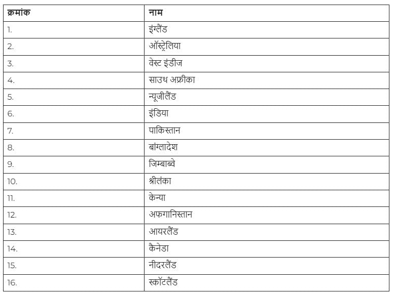 आंतरराष्ट्रीय क्रिकेट संघाच्या नावांची यादी (International Cricket team Names List)